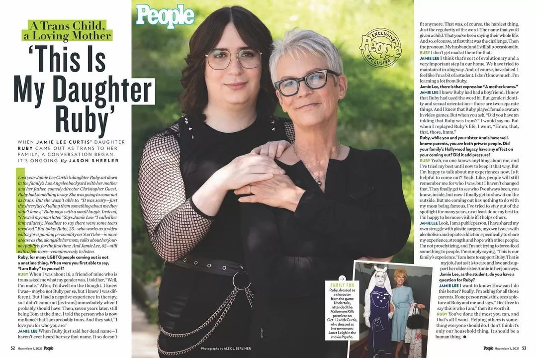 Hace un año, Jamie Lee Curtis y Ruby Guest, su hija, dieron una entrevista a la revista PEOPLE, donde tocaron ampliamente el tema y quisieron visibilizarlo al público. Ruby, editora de videojuegos de 25 años, contó que le había dado miedo contarles a sus padres sobre su identidad de género.