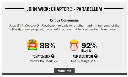 La primera entrega había logrado sumar $14 millones en su primer fin de semana y en el mismo periodo, la segunda parte logró obtener $30 millones. Ahora, con mayor presupuesto y una excelente campaña de promoción, John Wick: Capítulo 3 - Parabellum logró posicionarse como el mejor estreno del fin de semana y además, destronar a Avengers: Endgame del primer lugar.