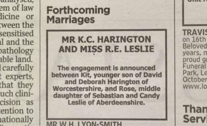 Hace unos días, se confirmó que Jon Snow y Rose Leslie estaban oficialmente comprometidos. La noticia no solo fue recogida por diversos medios sino que fue publicada oficialmente y a la antigua en el diario: