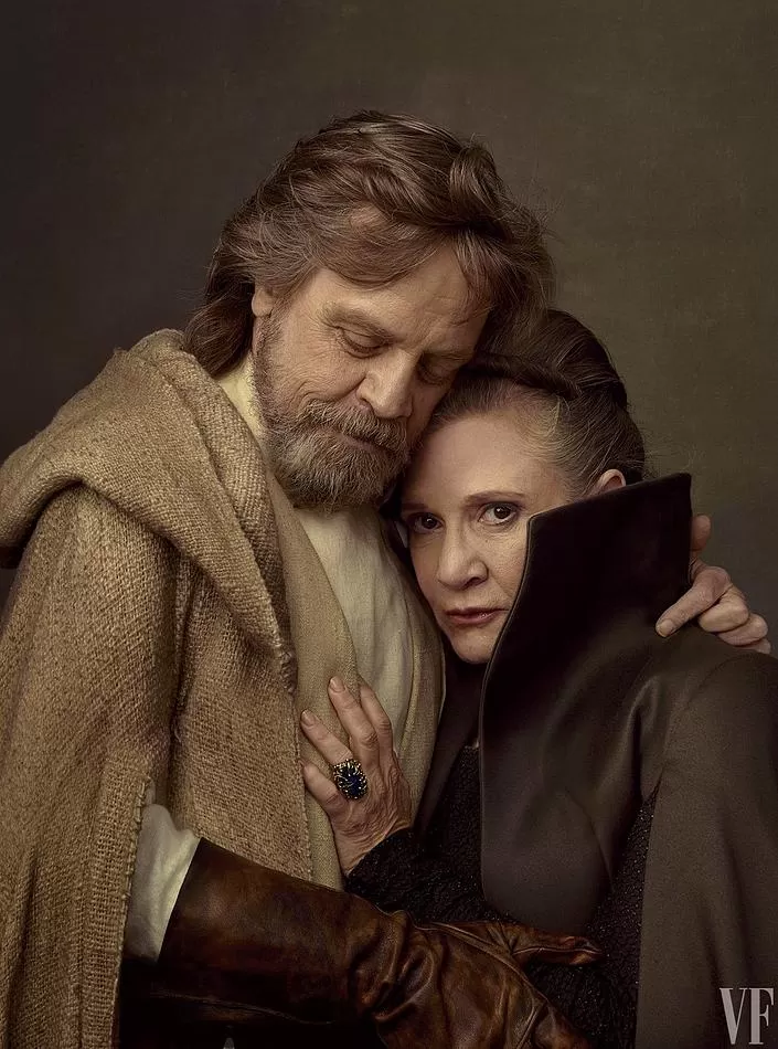 Si la foto del encabezado no ha estrujado un poquito tu corazón, entonces hazte chequear. Mark Hamill y la desaparecida Carrie Fisher posaron una vez más para el lente de Annie Liebowitz, fotográfa que ya había estado presente en el pasado Episodio para documentar algunas escenas para la revista Vanity Fair.