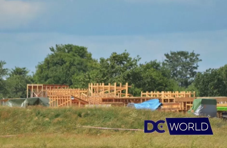 La gente de DC World ha tomado fotos y aunque no parezcan mucho a primera vista, se puede ver algo muy emocionante. Una de las imágenes presenta una estructura gigante con un arco familiar y si utilizas un poco de imaginación, es bastante fácil ver que esta estructura podría muy bien ser el Salón de la Justicia. Prácticamente se puede escuchar a Bill Woodson diciendo: "Mientras tanto, en el Salón de la Justicia".