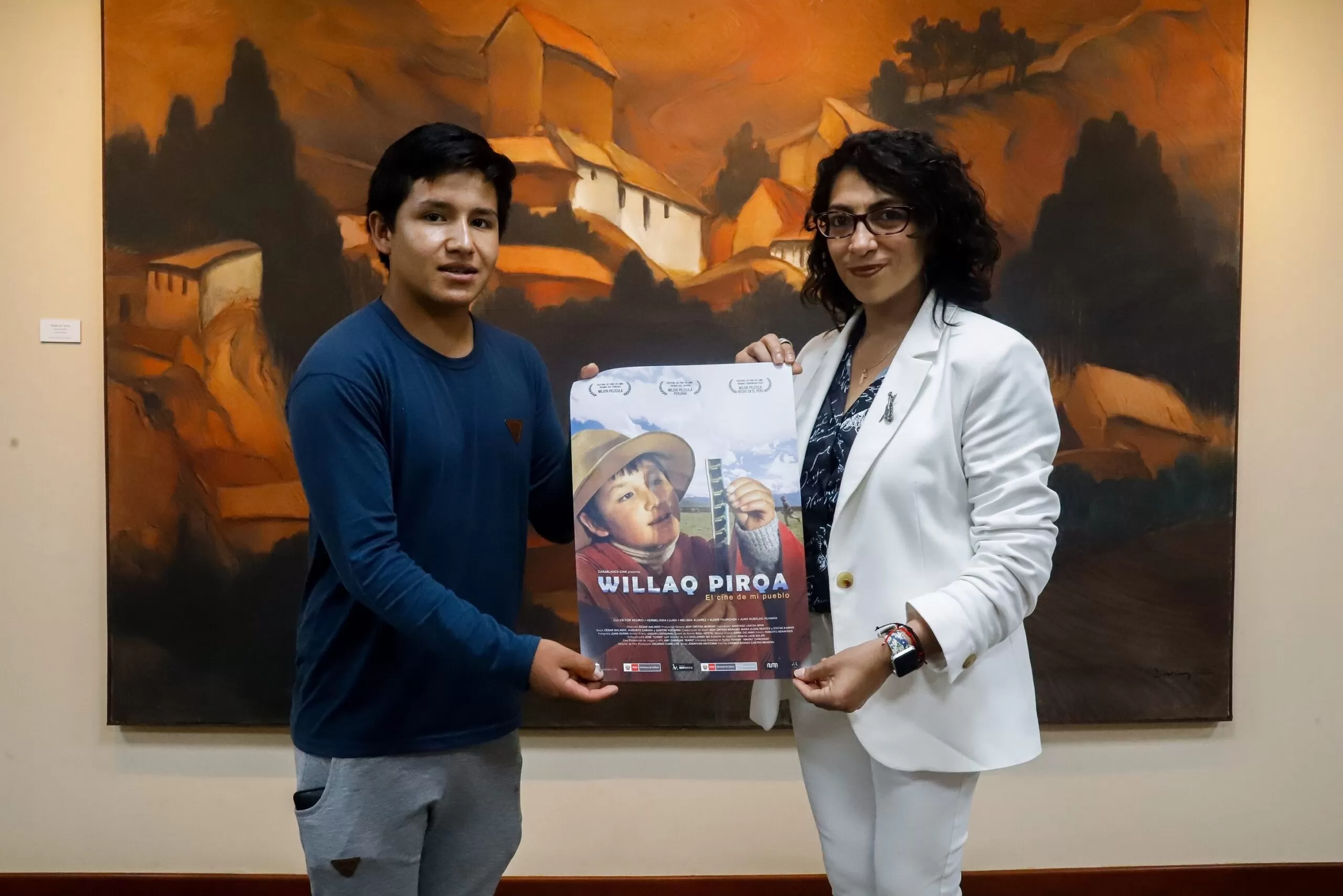 La ministra de Cultura, Leslie Urteaga, se reunió con el protagonista de la reconocida película “Willaq Pirqa”, el joven actor cusqueño Víctor Acurio (Sistu) y la productora de la cinta, Jedy Ortega, para recibir el reconocimiento y felicitación a nombre del Ministerio de Cultura por reivindicar con su trabajo la lengua quechua y la identidad cultural a través del cine.