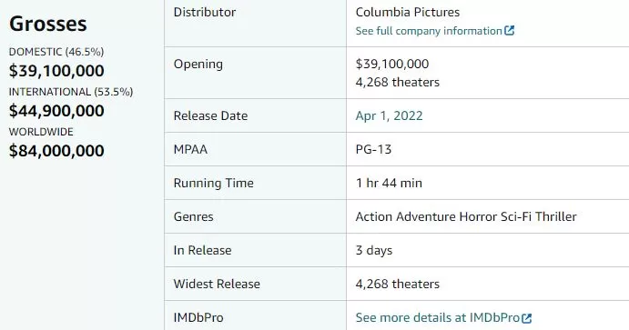 Es así que con los datos proporcionados por el portal Box Office Mojo nos enteramos cómo es que realmente le fue al título protagonizado por Jared Leto. De acuerdo a la data, 'Morbius' logró debutar con unos $39 millones solo en los Estados Unidos mientras que sus cifras globales ascienden a $84 millones.
