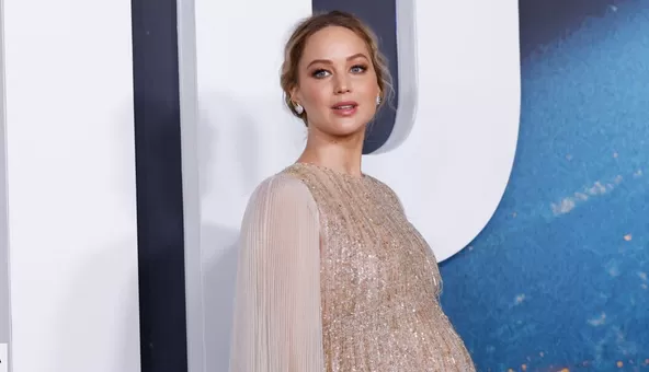 La estrella de 31 años, ganadora del Óscar, Jennifer Lawrence, deslumbró, con un vestido dorado, en la Alfombra Roja del estreno de su película más reciente ‘No Miren Arriba’, mostrándonos su barriga, en la dulce espera de su primer hijo con su esposo Cooke Maroney.