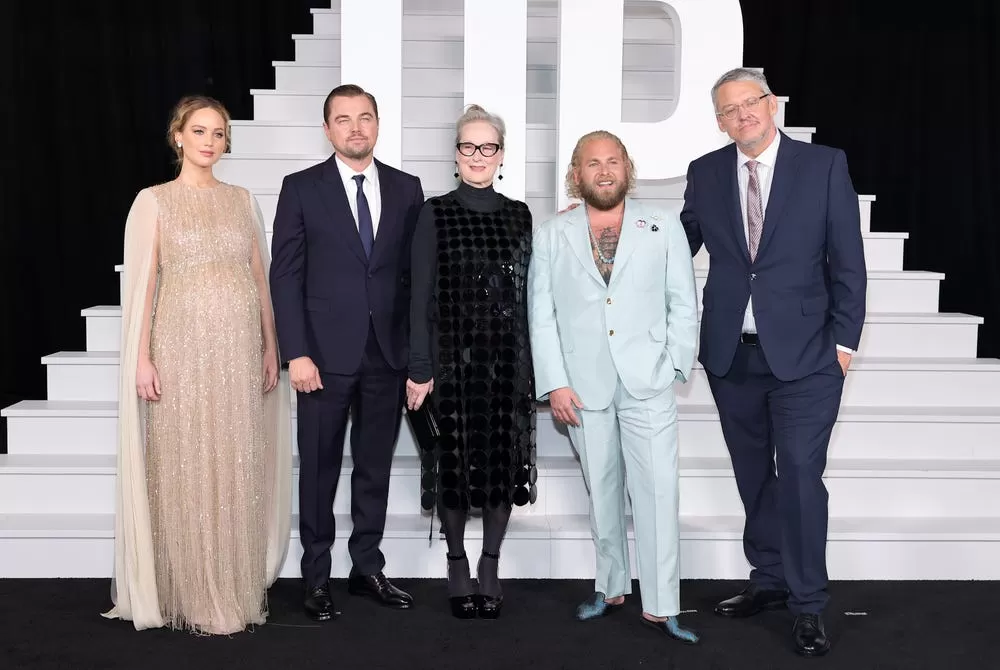 ‘No Miren Arriba’ cuenta también con Leonardo DiCaprio en el segundo rol titular, siendo él y Lawrence un par de astrónomos que realizan una gira mediática gigante para advertir a la humanidad que un cometa se aproxima y destruirá la Tierra.