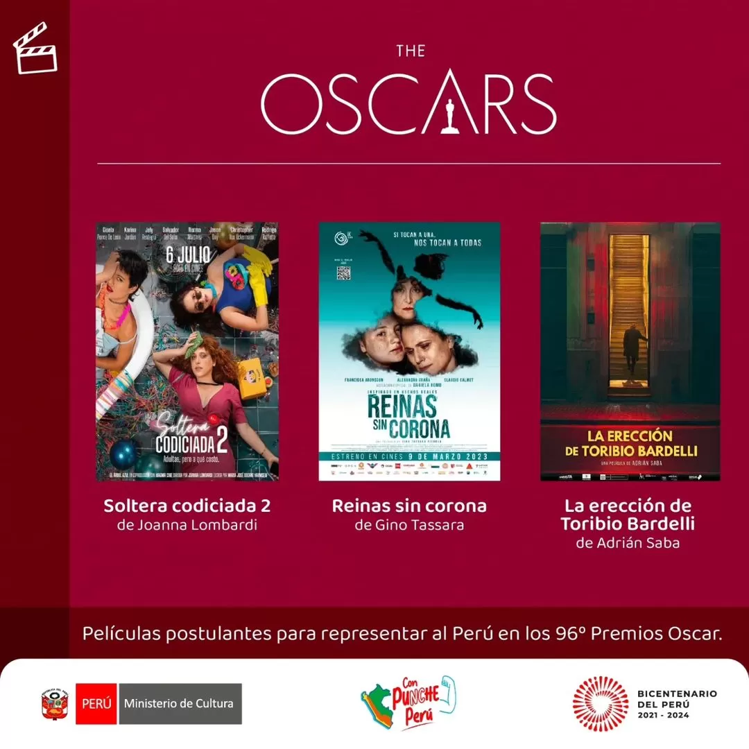 Como se revela en la publicación, son 3 las películas escogidas para representar al Perú en los Premios Oscar del próximo año, entre las que se encuentran 'Soltera Codiciada 2', 'Reinas sin Corona' y 'La Erección de Toribio Bardelli'. En cuanto a los Goya, a estas 3 películas se le sumarían 'La Pampa', 'Willaq Pirqa' y 'Tiempos Futuros'.
