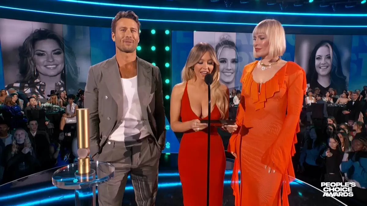 Mientras presentaban el premio a la artista country femenina, Sweeney, de 26 años, y Powell, de 35, comenzaron con una referencia a su reciente película. Sweeney preguntó: "¿Estás bien, Glen?". Powell respondió: “Sí, hay mucha gente aquí. No lo sé, estoy un poco nervioso”.