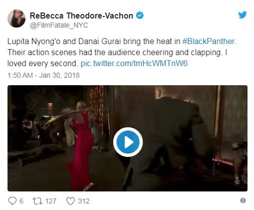 ReBecca Theodore-Vachon de Entertainment Weekly escribió que "Ryan Coogler ha cambiado [el] juego para UCM. Lupita Nyong'o y Danai Gurai son increíbles. Sus escenas de acción hicieron que la audiencia aplaudiera. Me encantó cada segundo.”