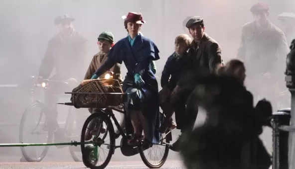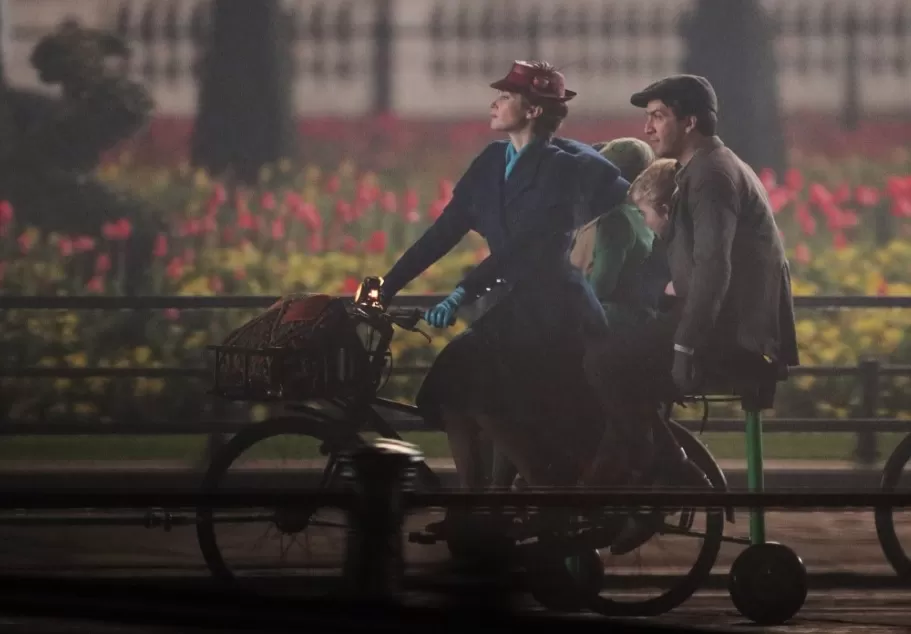 En febrero comenzó la producción de la esperada ‘El Regreso de Mary Poppins’ de Disney, que se está filmando en los estudios Shepperton en Londres. Durante el fin de semana, nuevas fotos de la cinta salieron a la superficie, con Emily Blunt y Lin-Manuel Miranda embarcándose en un paseo en bicicleta por la ciudad cerca del Palacio de Buckingham.