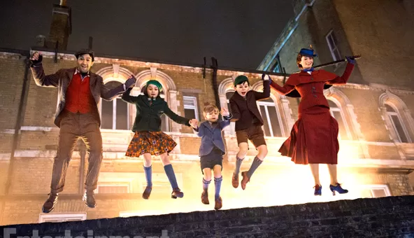 Tiene vistazos a Jack, el farolero (Lin-Manuel Miranda) quien lidera a los tres niños de Banks; Annabel (Pixie Davies), Georgie (Joel Dawson) y John (Nathanael Saleh) - y Mary Poppins (Emily Blunt) por las calles de Londres en uno de los musicales.