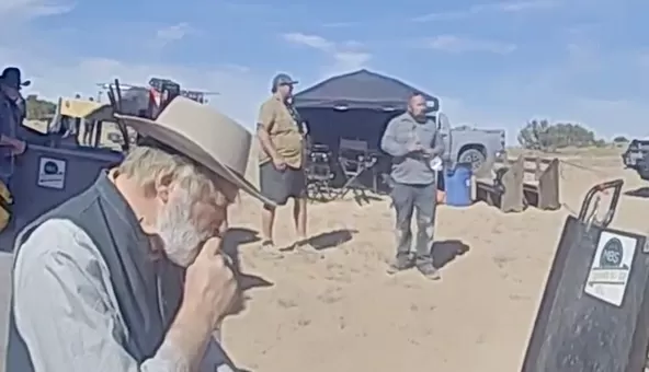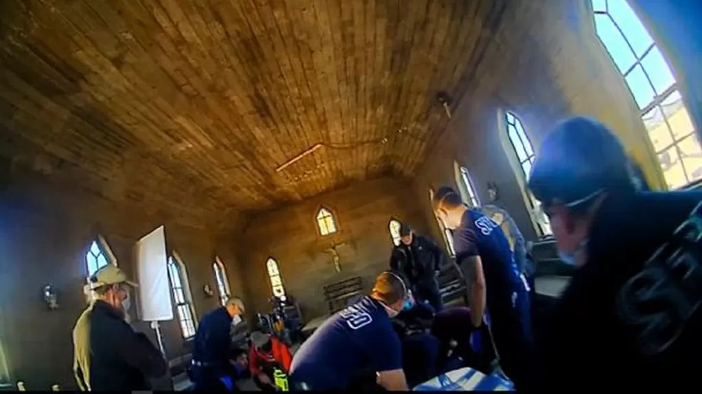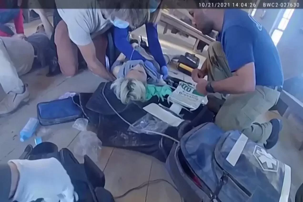 Una cámara corporal de un policía muestra dramáticas tomas del momento posterior al disparo. El proyectil golpeó en el pecho a Hutchins y luego se alojó en el hombro de Joel Souza, el director de la película que se encontraba justamente detrás de Halyna. También se puede ver a los oficiales arribando al set de filmación y el personal médico asistiéndola, pero lamentablemente no pudo salir con vida del set.