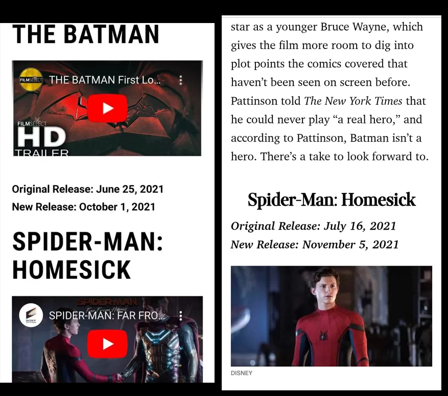 La noticia llega gracias a la web Murphy's Universe, quien tomó nota sobre estas modificaciones en las páginas de Esquire y Maxim, actualizando la información referida a la tercera entrega de la saga protagonizada por Tom Holland. Ambos se refieren ahora a la película como 'Spider-Man: Homesick'. Por lo pronto, la publicación de Maxim la puedes verificar en este enlace. La de Esquire aquí.