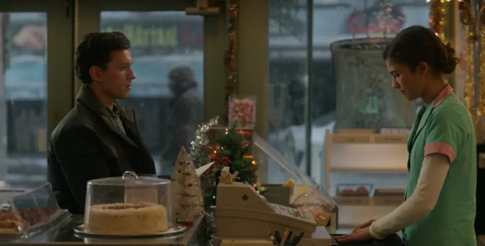 Por lo que en la última escena, vemos que Peter entra a una tienda de rosquillas donde trabaja MJ, no se reconocen y luego ingresa Ned, con quien MJ habla sobre sus ingresos a MIT.