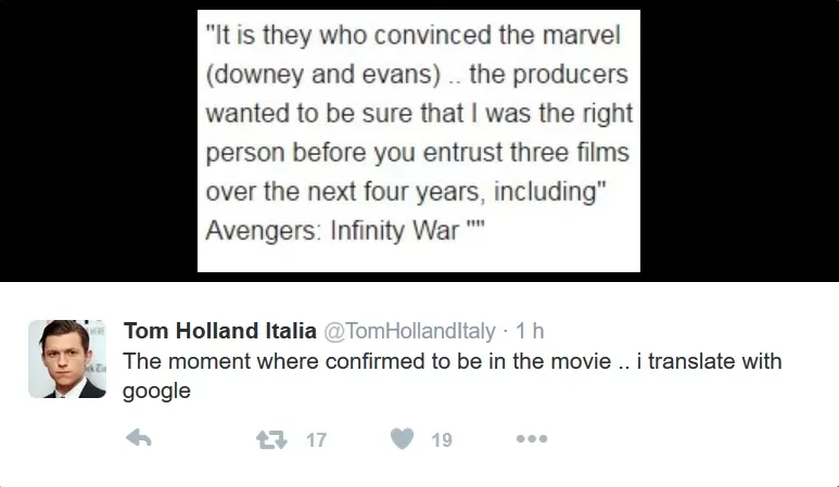 Hace poco, Tom Holland confirmó su participación en el film en una entrevista con Vogue Italia. La única fuente que tenemos por el momento es un sitio de fans del joven actor, que encontró la entrevista y la tradujo.