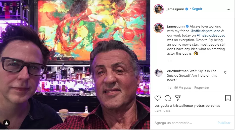 “Siempre me encanta trabajar con mi amigo @officialslystallone y nuestro trabajo de hoy en #TheSuicideSquad no fue una excepción. A pesar de que Sly es una estrella de cine icónica, la mayoría de la gente aún no tiene idea de lo increíble que es este actor”.