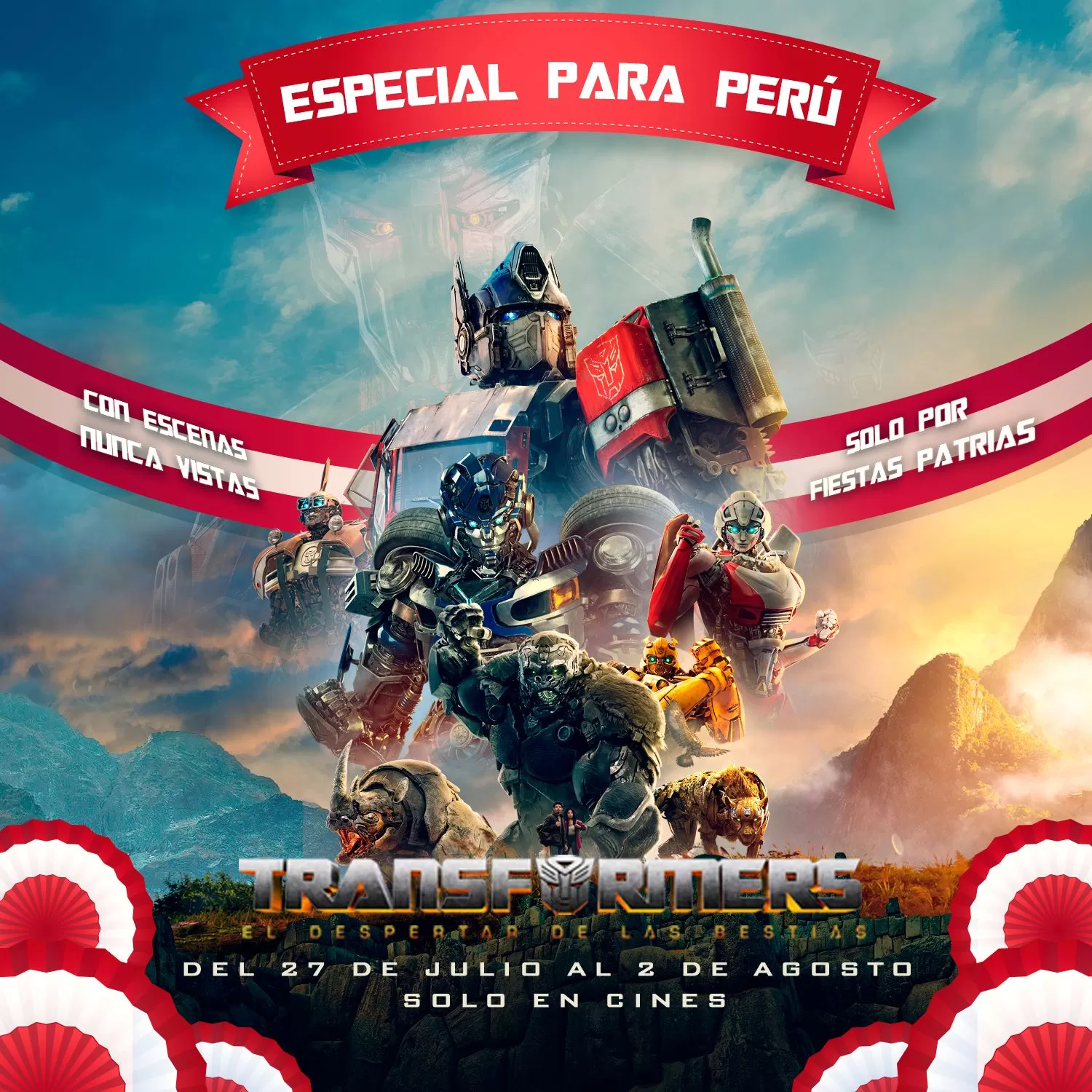 Como ya estás enterado, 'Transformers: El Despertar de las Bestias' tomó lugar en nuestro país y pudimos ver varios reconocibles paisajes del Perú pero ahora esta nueva edición vendrá con contenido no mostrado anteriormente y que llegará por tiempo limitado, del 27 de julio al 2 de agosto, a propósito de las celebraciones de nuestro país.
