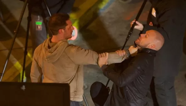 Aún seguimos en la espera de más información acerca del nuevo film que protagonizará Tom Hardy, pero ahora, han salido a la luz (gracias a Just Jared) nuevas imágenes del set en donde vemos al protagonista en una pelea con Scott Haze (El Ruido y la Furia). Sin embargo, Haze no será quien interprete a Carnage. Quizá simplemente sea un secuaz.