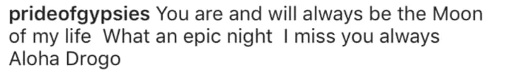 “Eres y siempre serás la luna de mi vida. Qué noche tan épica, te extraño. Aloha, Drogo”