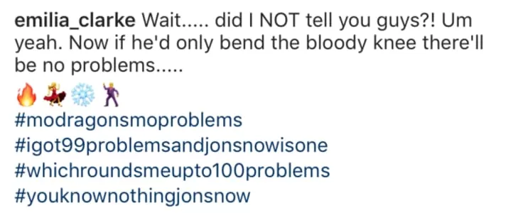 3. Cuando Jason Momoa (Khal Drogo) se encontró con Emilia en Londres, y ella compartió esta foto, dejando un adorable comentario.