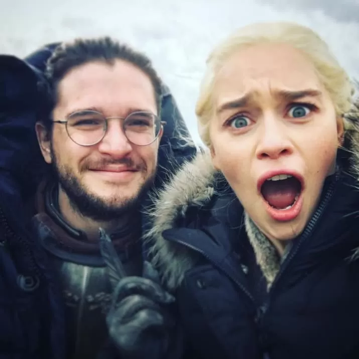 1. Cuando Emilia Clarke (Daenerys) y Kit Harington (Jon Snow) estaban encantados de finalmente filmar escenas juntos.