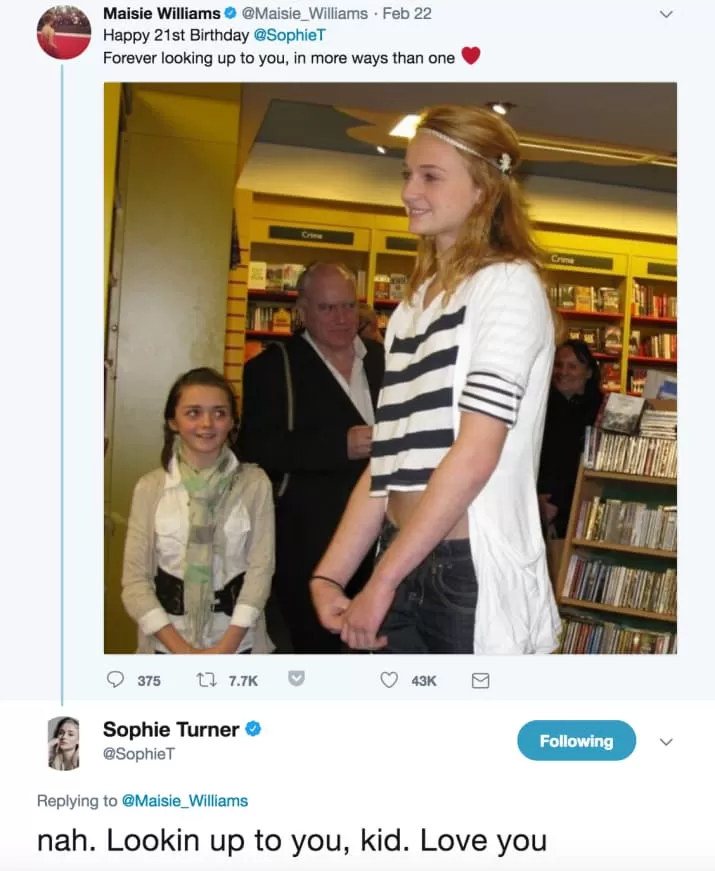 11. Cuando Maisie publicó esta foto y tanto Sophie como Alfie Allen (Theon) fueron grandes admiradores.