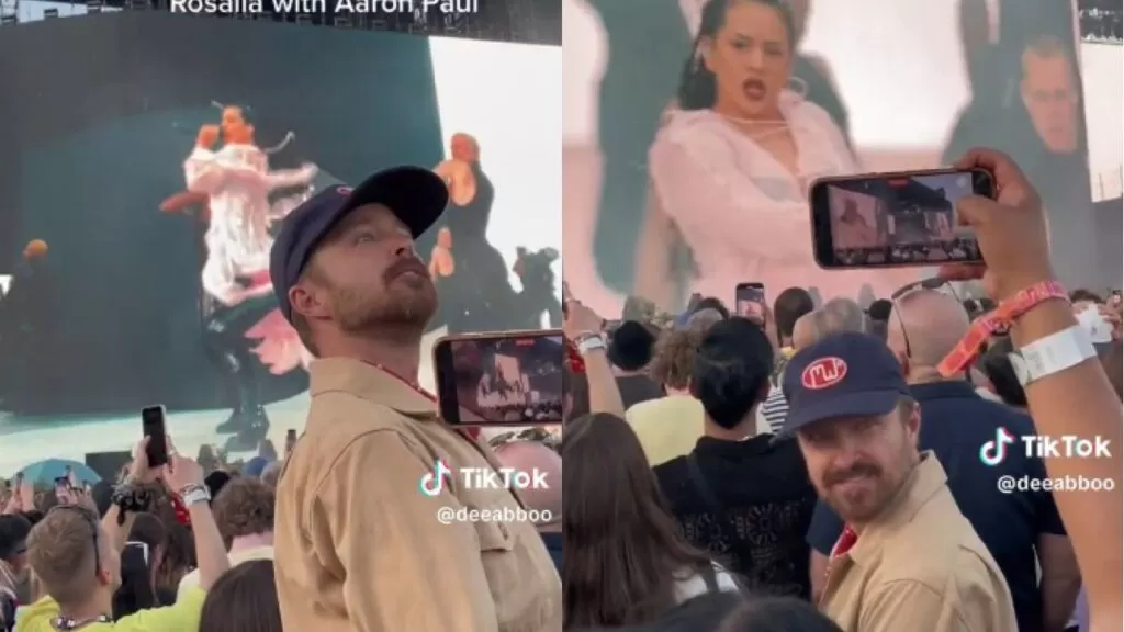 Cerca al escenario, se encontraba nada más y nada menos que Aaron Paul, el famoso actor que interpretó a Jesse en la serie de AMC. El fue captado bailando la canción ‘Bizcochito’ de Rosalía.
