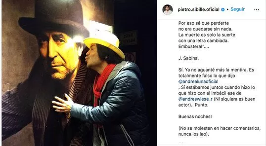 En una publicación que ya fue eliminada de su cuenta, Sibille había escrito que Andrea Luna le fue infiel, llamándola "embustera", y tildando de "imbécil" a Andres Wiese: