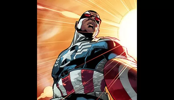De acuerdo a un segmento de The Colbert Report, el gigante de los cómics anunció que Steve Rogers pasará su escudo a Sam Wilson en otoño, convirtiendo a Wilson (conocido como Halcón) en el primer hombre de color en tomar el rol oficial de Capitán América. El cambio parece que encaja perfectamente con lo que se ha venido trabajando y después del resultado de eventos recientes en la continuidad de Capitán América - a quien se le extraerán sus poderes y posteriormente envejecerá, por lo que le cedería la posta a Wilson.