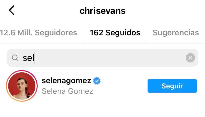 La cantante de 29 primaveras y el actor de 40 encendieron las alarmas desde que Chris empezó a seguir a Selena en Instagram, convirtiéndose en un verdadero fenómeno en las redes en las últimas horas a pesar que este follow se había dado días atrás. Aquí también hay que anotar que solo es Chris quien sigue a Selena pues ella aún no le da follow.