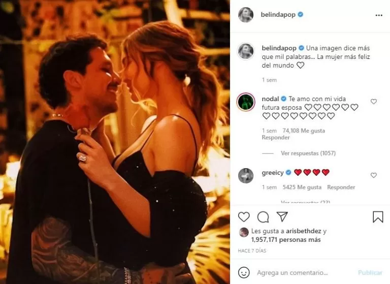El amor entre ambos fue algo que no ocultaron en redes sociales, incluso compartiendo las muestras de amor que tenían el uno por el otro, como los tatuajes que se había hecho Nodal en honor a Belinda. Uno de ellos, y que dio mucho qué hablar, fue uno enorme que se hizo el cantante en el pecho, con los ojos de Belinda.