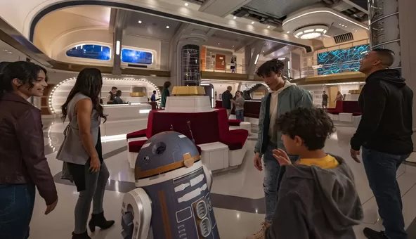 Presentado por primera vez durante la D23 Expo de Disney en el 2019, el Galactic Starcruiser, ubicado cerca del Disney World Resort en Orlando, Florida, abrió sus puertas en marzo de 2022.