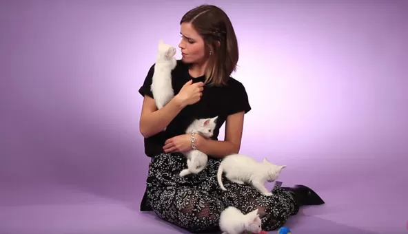 Gracias a BuzzFeed Celeb, la estrella de La Bella y la Bestia respondió las preguntas de los fans rodeada de tiernos y blanquitos mininos (ojo que había un gatito negro que curiosamente no fue muy fan de Emma por lo que casi no aparecía en escena) que no dejaban de jugar a su alrededor.