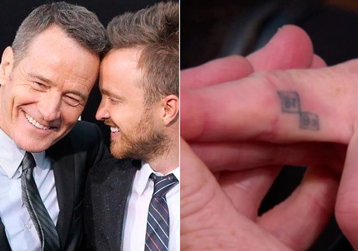 Breaking Bad es una de las mejores series que se han realizado recientemente. Así, no es de extrañar que sus protagonistas, Bryan Cranston y Aaron Paul estuvieran entre los miembros del equipo de la serie que aprovecharon la oportunidad de que uno de los miembros del equipo fuese también tatuador. En una entrevista con la revista GQ, Cranston reveló que se había hecho el logo de la serie mientras que Paul optó por una icónica frase en su bíceps: "No half measures".
