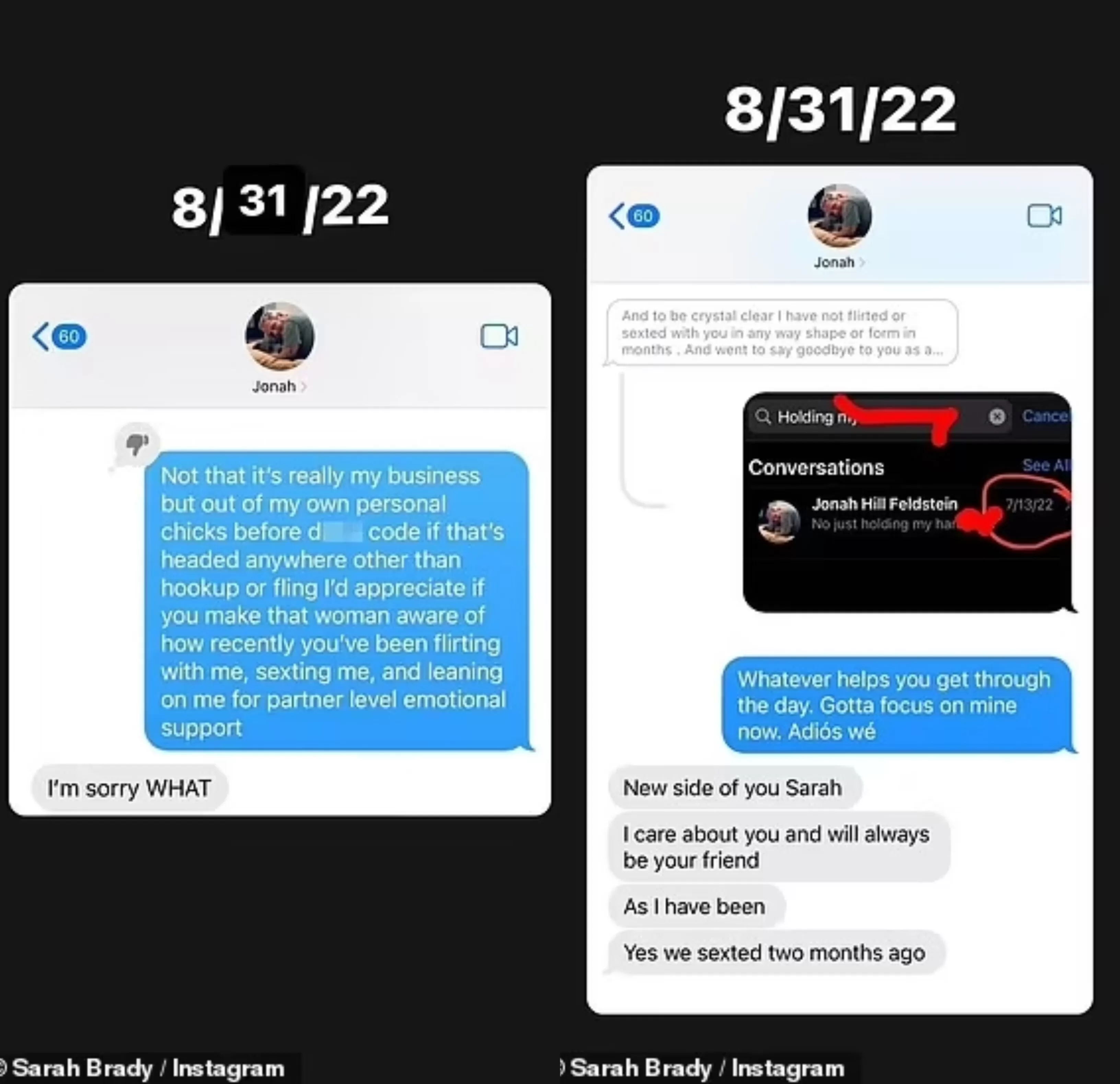 En los últimos días, la surfista profesional y modelo Sarah Brady ha compartido una serie de presuntos intercambios de mensajes de texto entre ella y su exnovio Jonah Hill, reconocido actor. Estas capturas de pantalla revelaron un lado controlador de Hill como pareja, mostrando su intento de controlar todos los aspectos de la vida de Brady, desde su forma de vestir hasta sus interacciones con otras personas.