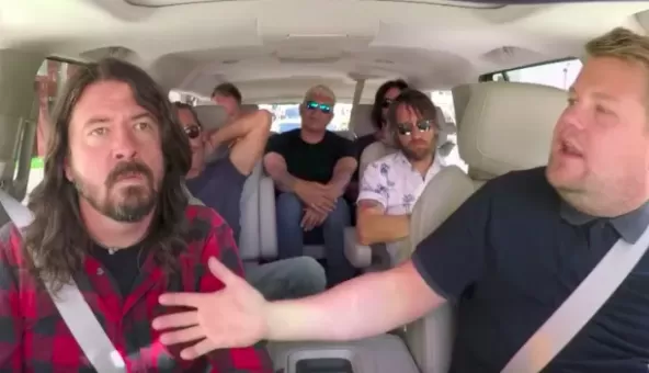 Además de haber tenido recientemente a Miley Cyrus en una nueva edición de Carpool Karaoke, uno de sus últimos invitados fueron el grupo de rock Foo Fighters quienes acompañaron a Corden en un recorrido por la ciudad e incluso, hicieron una parada en una tienda de música donde se apoderaron de la escena con sus hits.