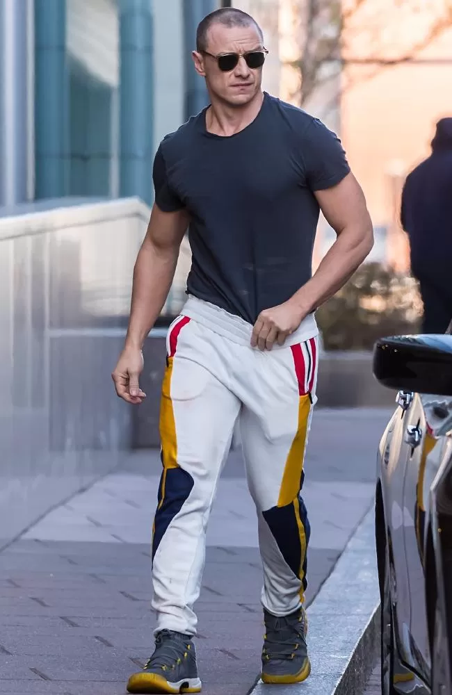 El actor escocés James McAvoy fue apenas reconocible con su nuevo corte de pelo y físico mientras daba un paseo por Filadelfia. A sus 38 años, reveló sus bíceps con una camiseta azul ajustada mientras caminaba por la calle.