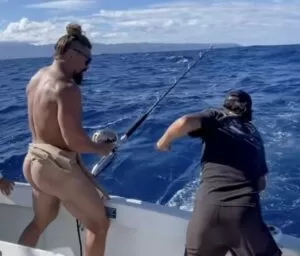 Jason Momoa atrapó dos peces uku de gran tamaño y lo compartió en sus redes sociales por la gran hazaña junto a su compañero. Sin embargo, no solo fueron los peces que llamaron la atención, sino la poca ropa que usaba el actor al estar de vacaciones mar adentro, la cual apenas arropaba sus glúteos.