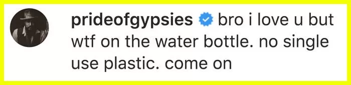 “Hermano, te amo, pero, ¿qué diablos haces con una botella de agua de plástico? Nada de plásticos de un solo uso. Vamos”
