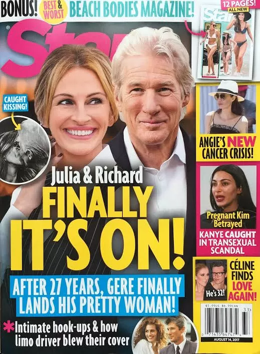 Ambos se reunieron en 2015 para celebrar el 25 aniversario de su clásica comedia romántica en el programa "Today", durante el cual se saludaron con un beso amistoso. Star comenzó su nueva historia de portada al referirse a este momento, pero inexactamente dice que “tocaron labios”. Puede haber aparecido ligeramente como un beso en la boca basado en el ángulo de la cámara, pero Gere en realidad le dio a Roberts un beso en la mejilla.
