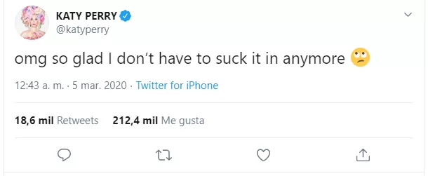 Así lo anunció Perry el día de ayer con su nueva canción y videoclip ‘Never Worn White’, que al parecer hace referencia, entre otras cosas, a su boda con Russell Brand allá por el 2010, donde vistió de gris y no de blanco. El video termina con una breve toma de Katy con un vestido blanco y sosteniendo su barriga, que ciertamente se ve sobresalir.
