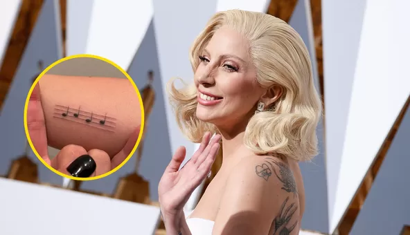 El tatuaje de Gaga con las palabras "la vie en rose", se refiere al nombre de una canción que canta como Ally en la película. Si la viste, recordarás que fue lo que cantó en un bar, y es lo que convenció al personaje de Bradley Cooper para que la eligiera.