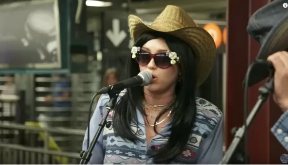 Ambos se disfrazaron como músicos callejeros con peluca negra y gafas de sol y ofrecieron un show en la estación Rockefeller Center en el metro de Nueva York junto a dos músicos. La cantante y el presentador interpretaron “Jolene” y parecían un típico dúo en el metro, pero nadie pudo evitar parar para escuchar y grabar con sus celulares la actuación de este grupo aún desconocido. ¡Qué voz!