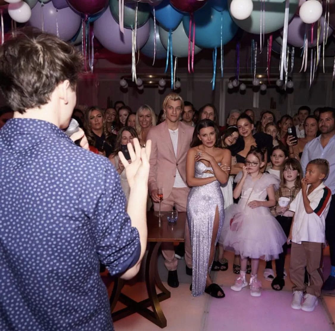 En una de ellas podemos ver que Schnapp dio en discurso, donde podemos ver visiblemente emocionada a Millie aunque no sabemos realmente qué fue lo que dijo delante de todos sus familiares y amigos.