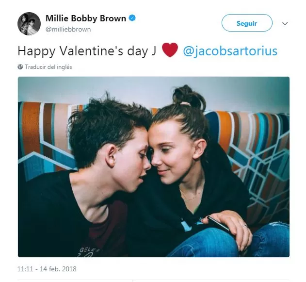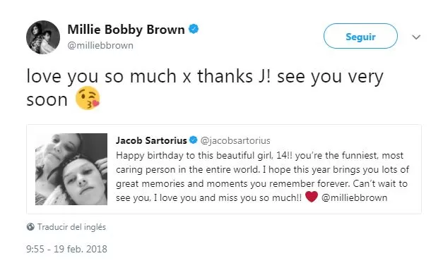 Millie Bobby Brown respondió, "te amo tanto x gracias J! Te veo muy pronto", agregando un emoji de cara de beso.