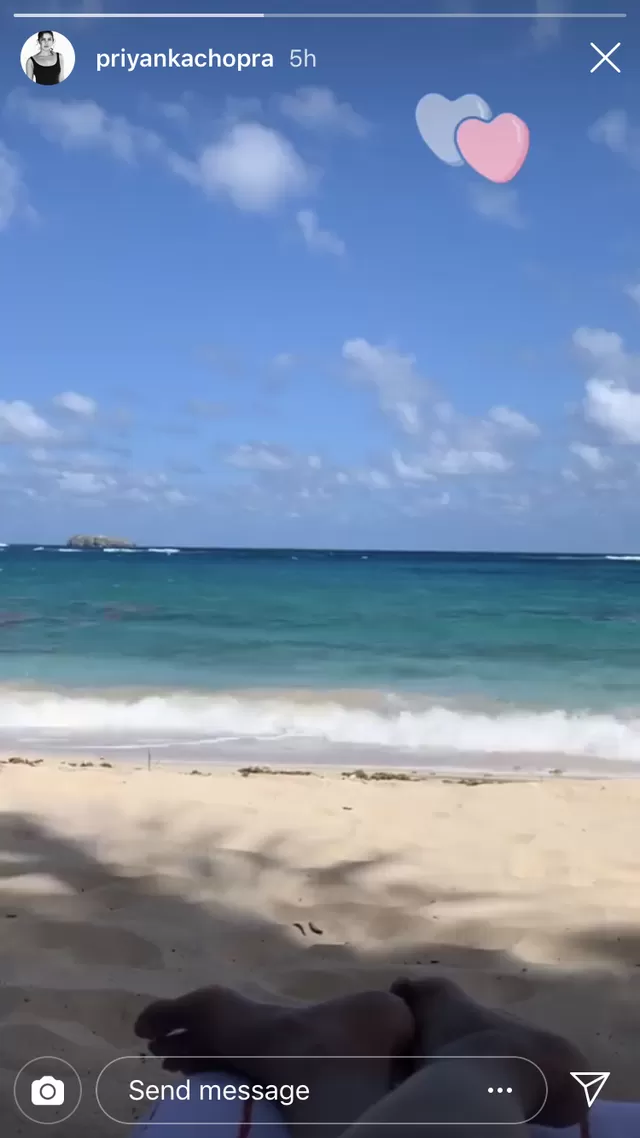También compartió un video de Chopra en un columpio mientras los dos viven la buena vida en la pintoresca playa. La actriz dio un vistazo a su paraíso antes en su historia de Instagram: