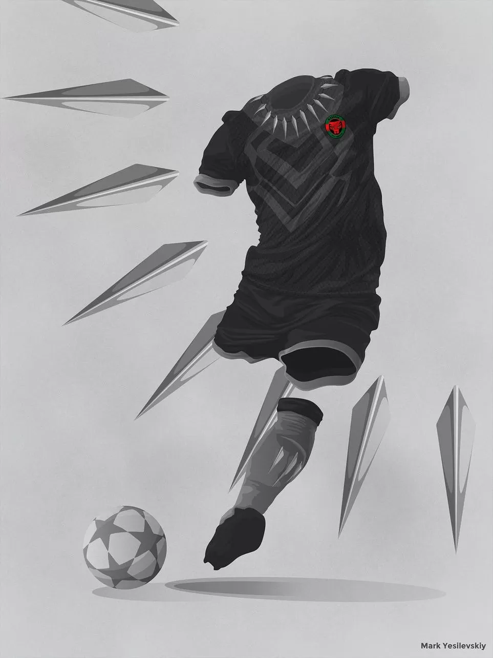 Por eso, el artista gráfico Mark Yeselevskiy ha diseñado los trajes que usaría Wakanda si fuera parte del Mundial. La nación africana ficticia es reconocida por sus avances tecnológicos y científicos, así como su poder de lucha. Ha preparado el uniforme que la selección usaría como locales y otra inspirada en la guardia real del país para cuando se disputen como visitante: