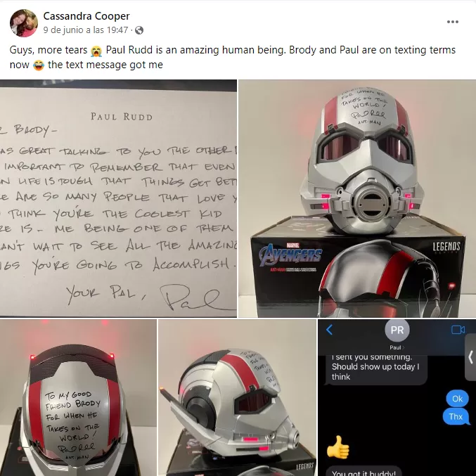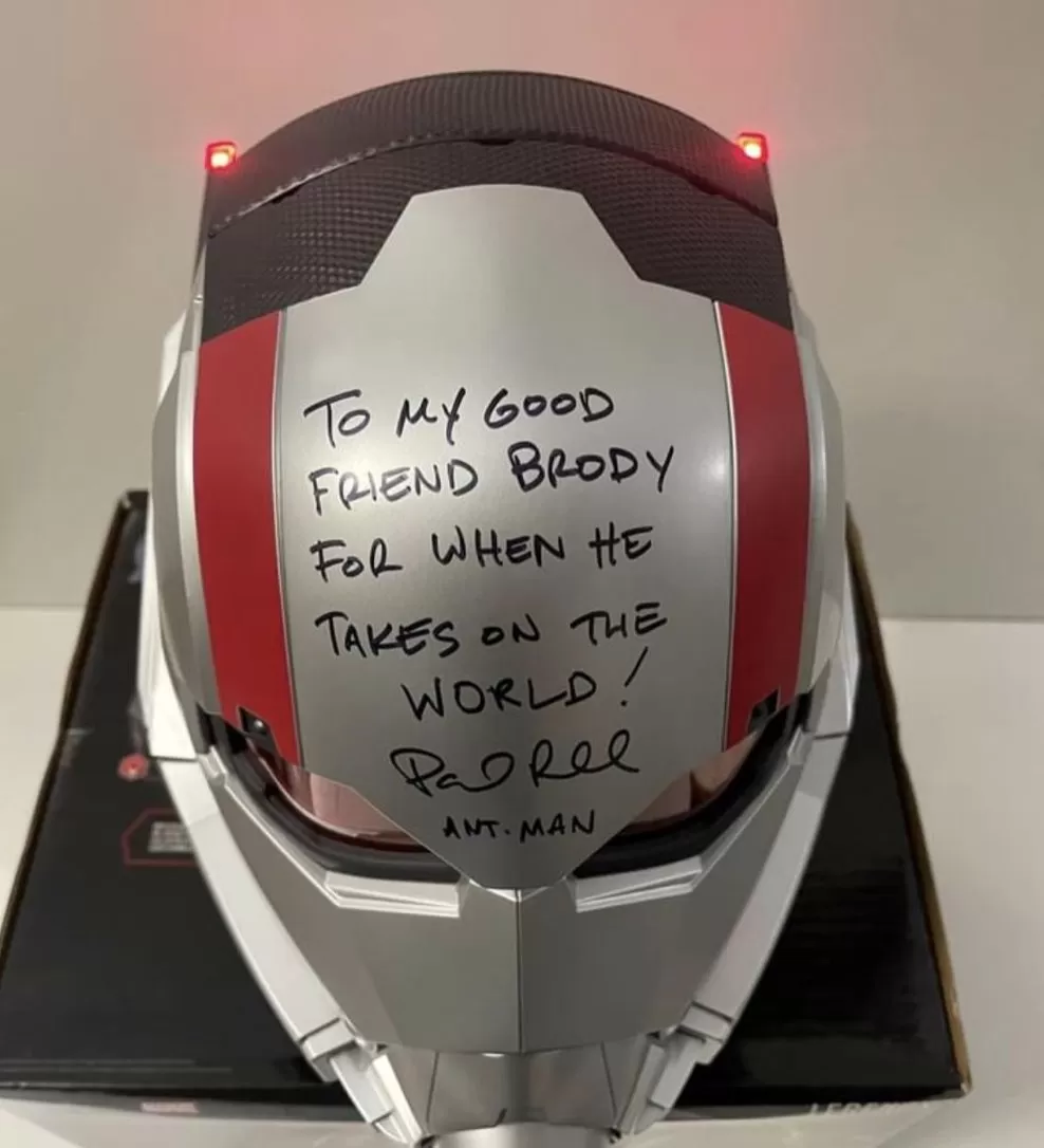 Pero todo no quedó ahí, porque luego le envió un gran paquete al pequeño Brody que contenía un casco de Ant-Man firmado y además, una nota escrita a mano por el actor: