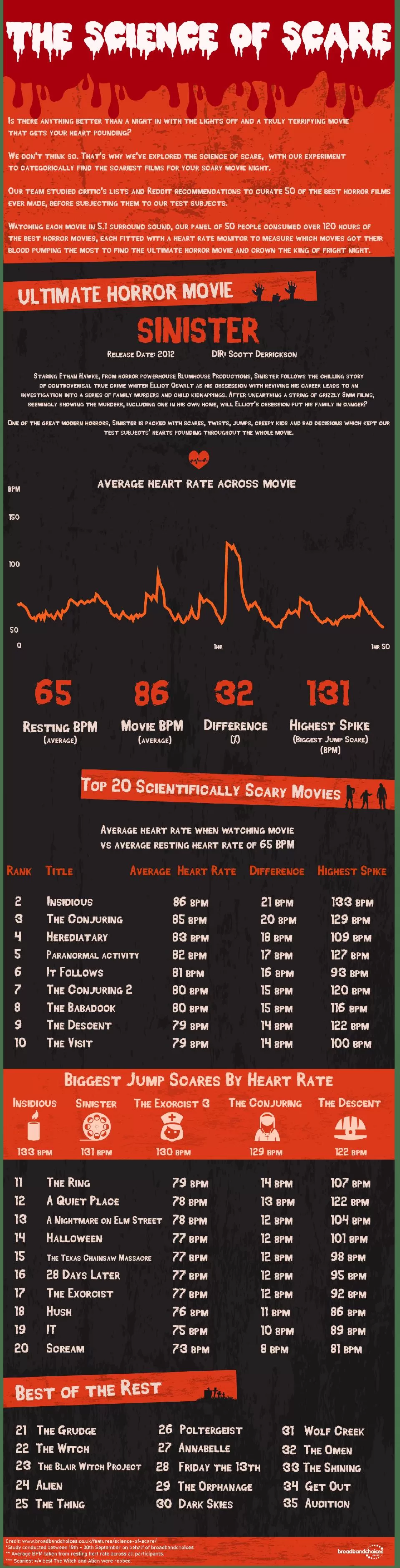 Por lo pronto, La Noche del Demonio y Siniestro (como Sinister) las puedes encontrar en Amazon Prime. Aquí te dejamos también la tabla oficial de medición del estudio de 'The Science of Scare':