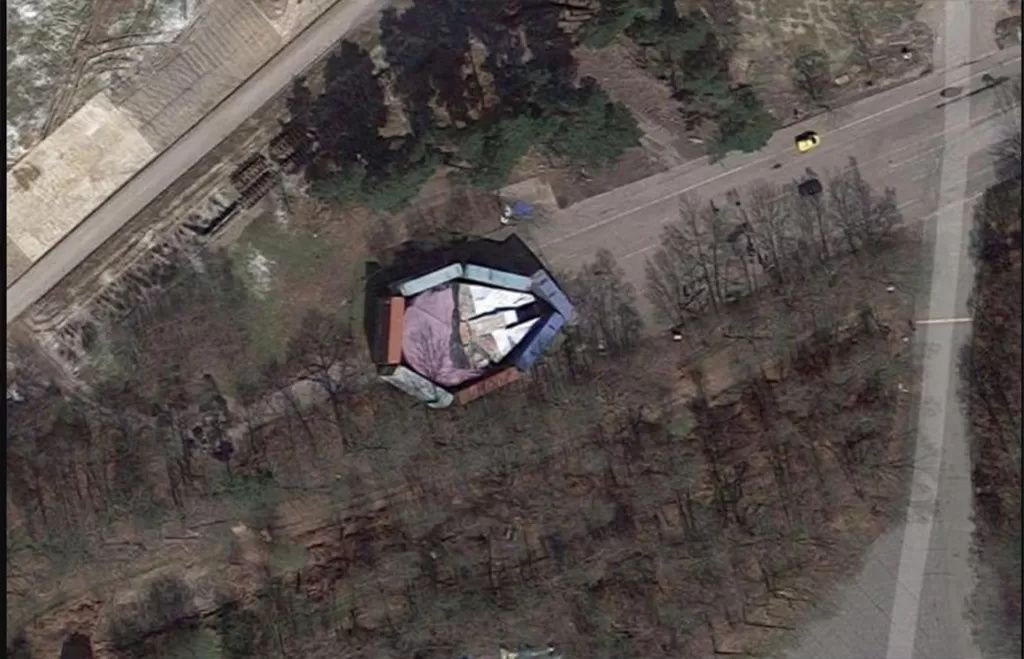 Una reconstrucción a tamaño real del Halcón Milenario está lista para rodar una próxima escena. Los encargados de hacer la nave, tal como se muestra en la imagen por satélite, intentaron ocultarla de los transeúntes con contenedores. Pero aun así, vista desde arriba, está clarísimo que es el Halcón Milenario.