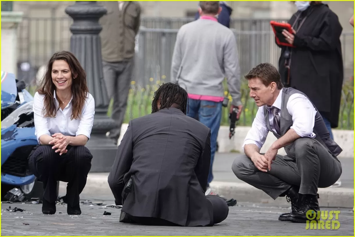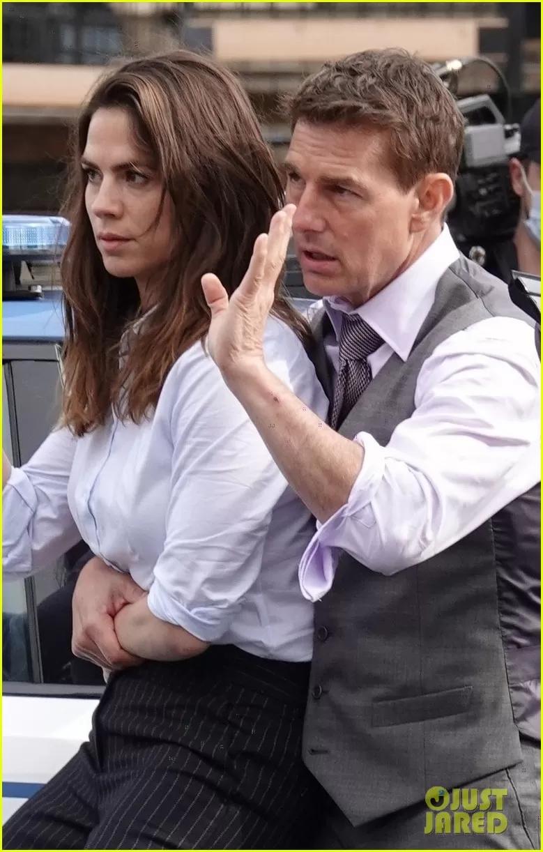 Una importante escena de acción junta a sus protagonistas, el siempre astuto agente Ethan Hunt (Tom Cruise) con el personaje interpretado por Hayley Atwell. Aquí podemos ver que ambos se ven involucrados en un accidente automovilístico mientras rápidamente evoluciona en una balacera. Ambos actores fueron vistos riéndose y conversando entre tomas. Te dejamos las imágenes que vienen cortesía de Just Jared y te contamos que el estreno de esta película está programado para el 19 de noviembre.